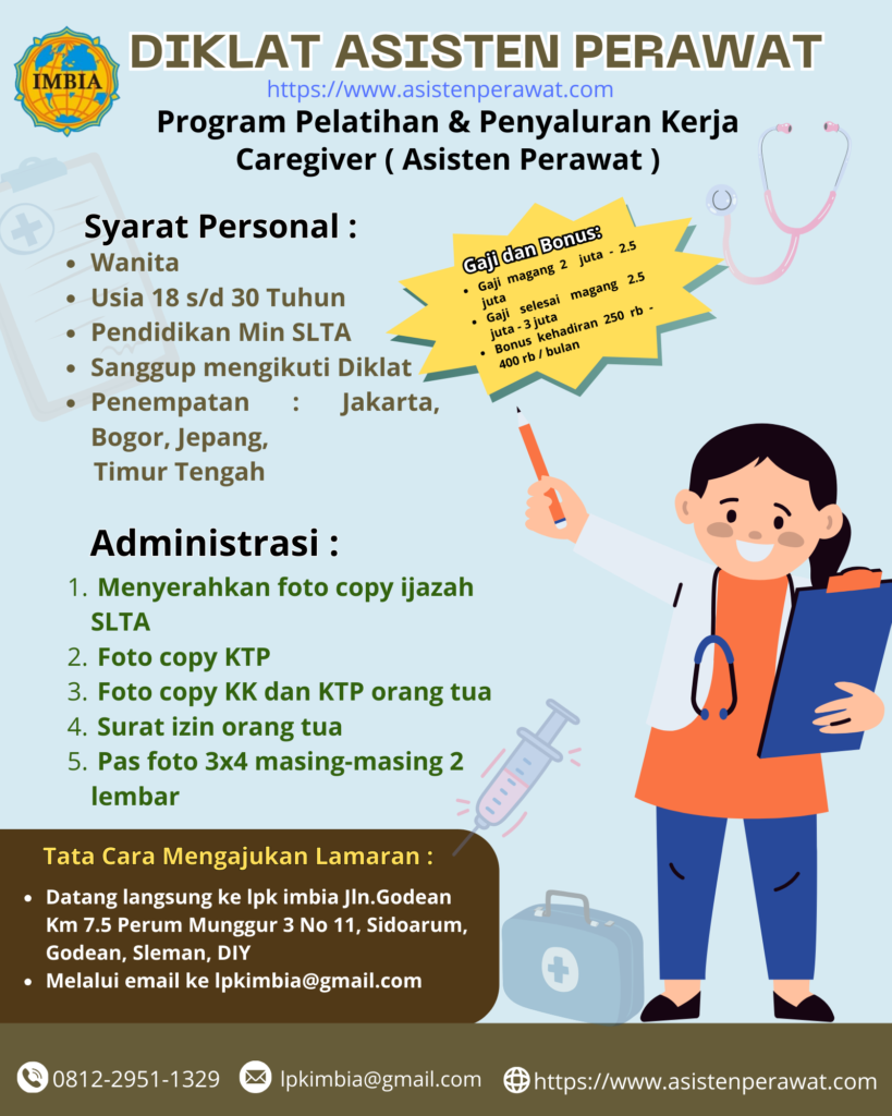 💪 Daftarkan diri Anda sekarang juga di LPK IMBIA dan mulailah perjalanan karier Anda sebagai asisten perawat profesional!